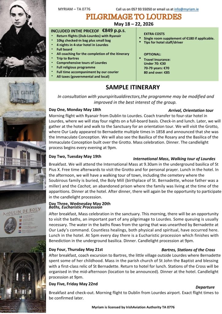 PILGRIMAGE TO LOURDES From Celbridge & Straffan 2026 !!!!